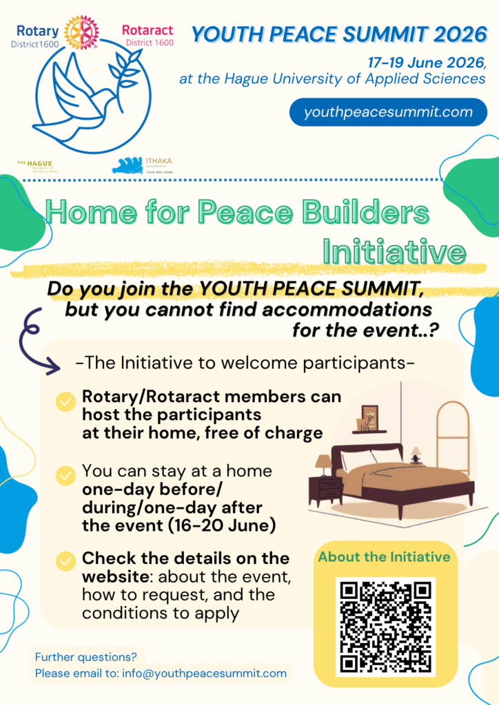 If you have any questions regarding registration, participation, or accomodation? Don’t hesitate to reach out to us with an e-mail to info@youthpeacesummit.com